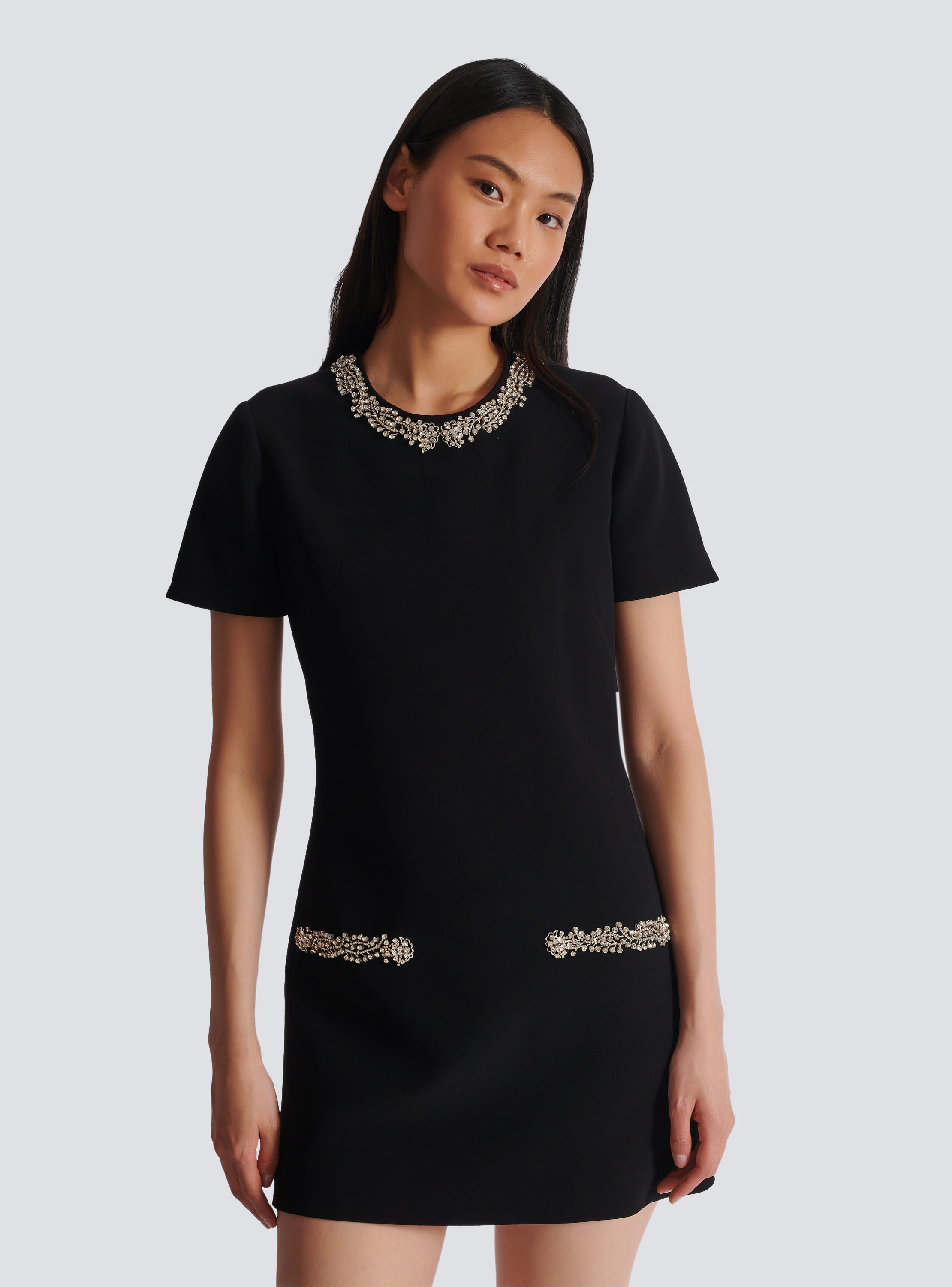 Embroidered crepe shift dress