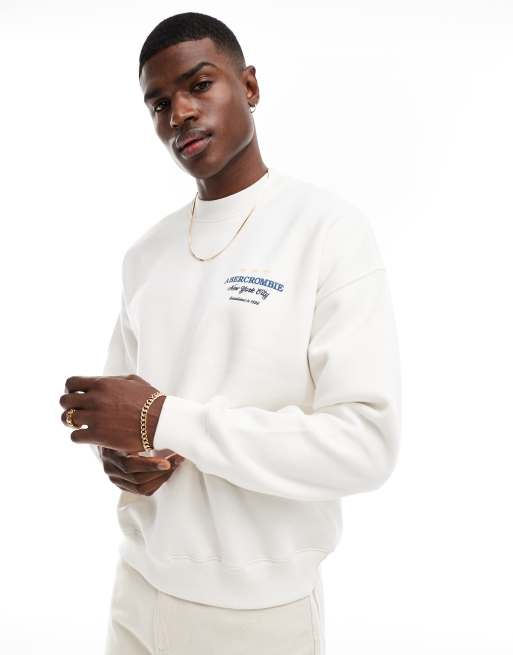 A&f sweatshirt deals, Abercrombie Fitch front back tile embroidered logo sweatshirt in white deals