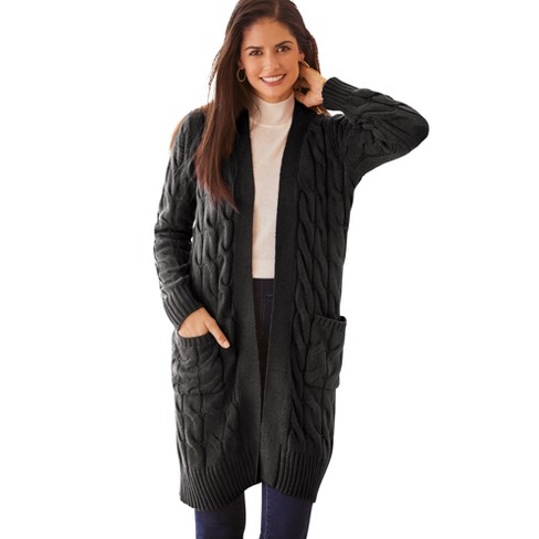 Jessica London Women s Plus Size Cable Duster Sweater 18 20 Black Target