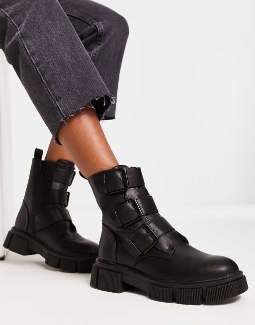 Black flat boots with buckles deals, Ankle boots with buckles in black greased leather Jonak deals