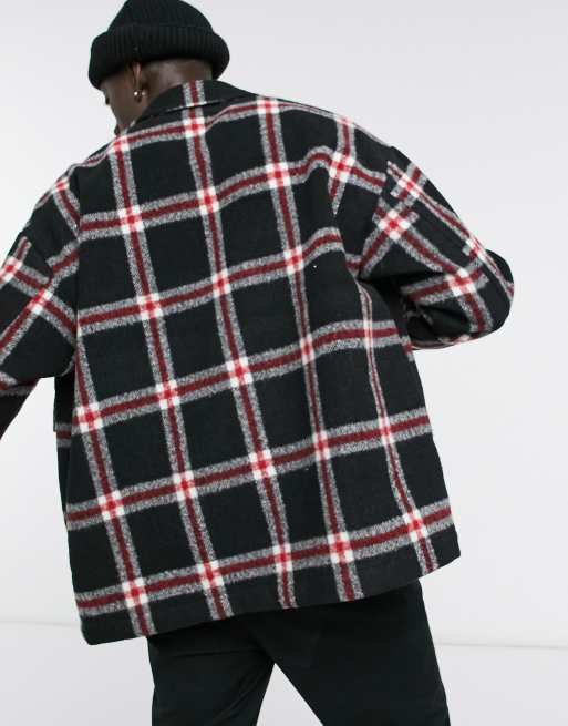 ASOS DESIGN wool look harrington jacket in red and black check