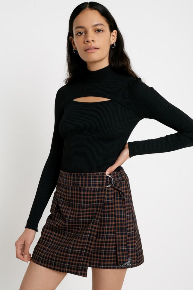 Black plaid skirt urban outfitters deals, UO Plaid Check Utility Wrap Mini Skirt deals