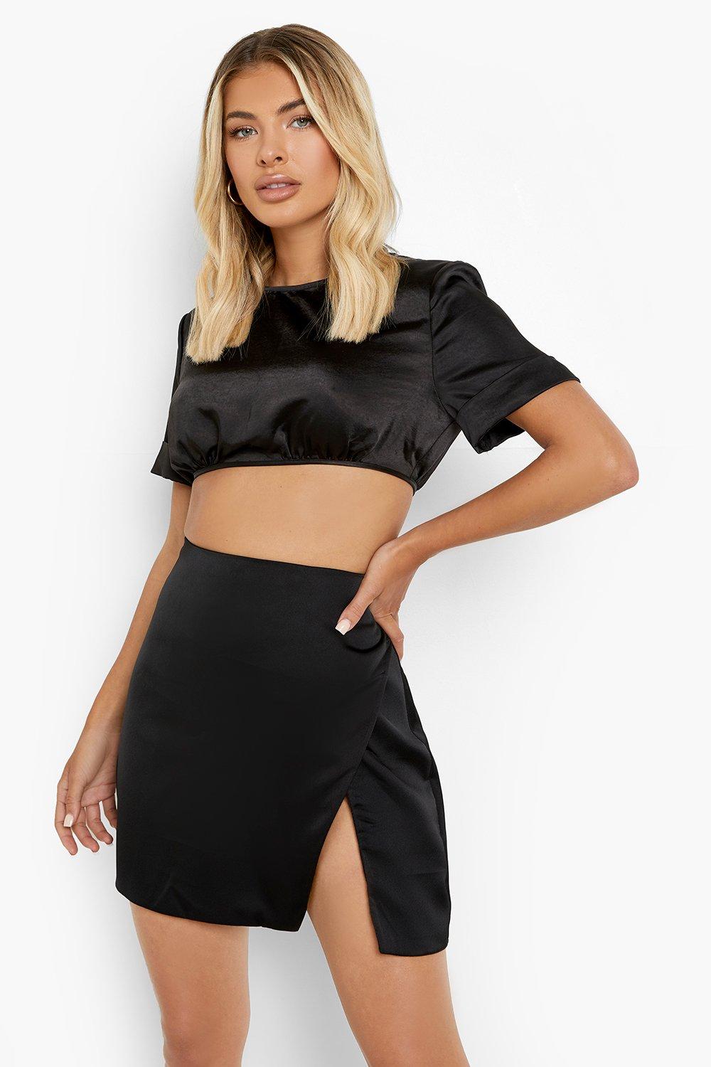 Black satin skirt with split deals, Satin High Split Mini Skirt deals