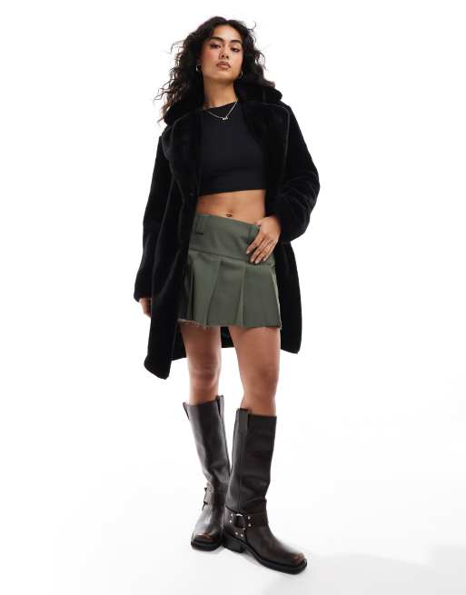 Black soft faux fur longline coat deals, Bershka soft faux fur longline coat in black deals