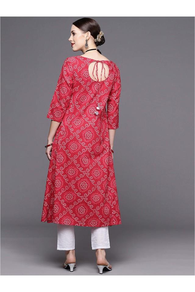 Buy VARANGA Red Printed Cotton Boat Neck Womens Regular Kurta Shoppers Stop