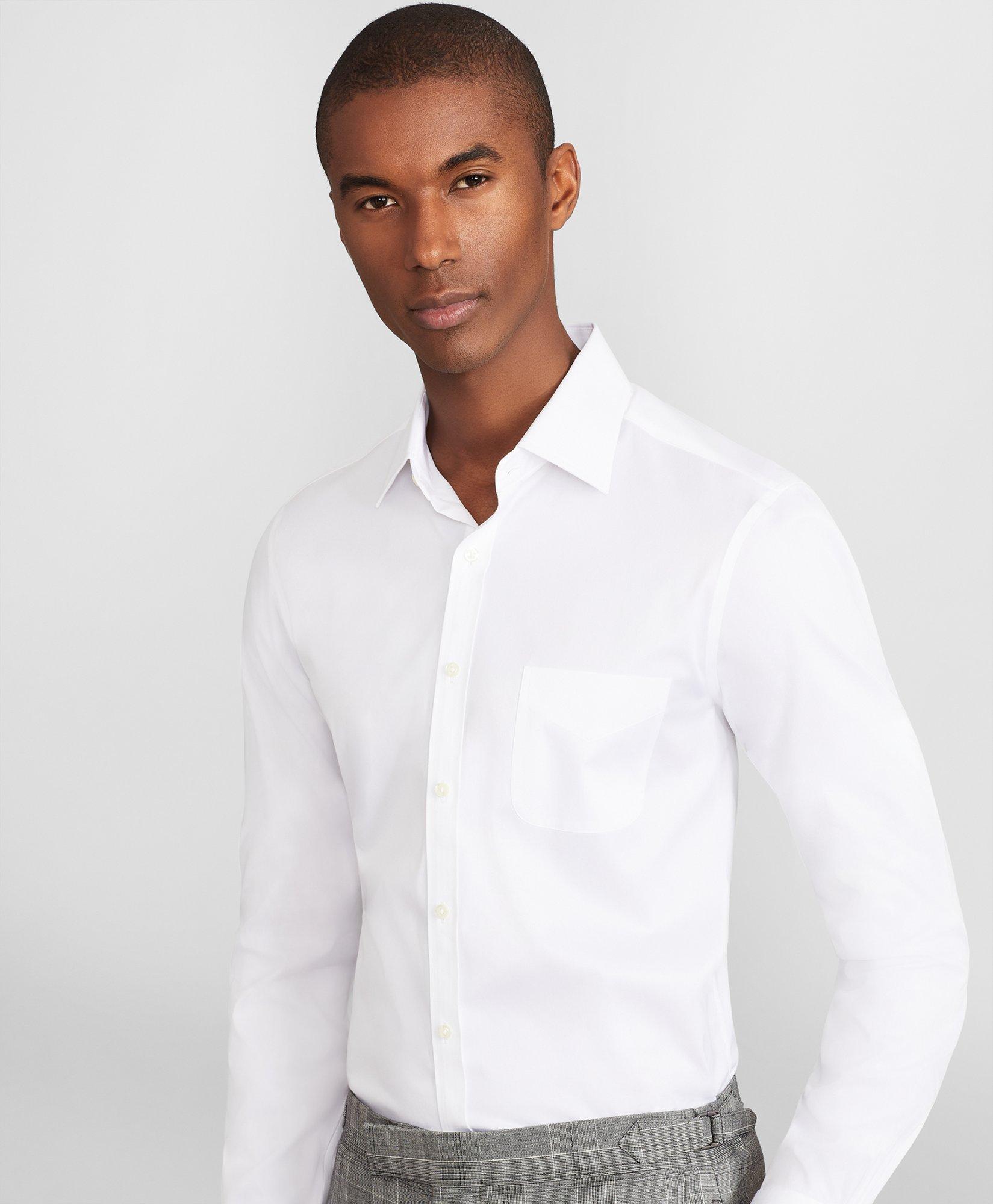 White Regular Fit Non Iron Stretch Supima Cotton Twill Dress Shirt with Button Down Collar in White for Men Brooks Brothers UK