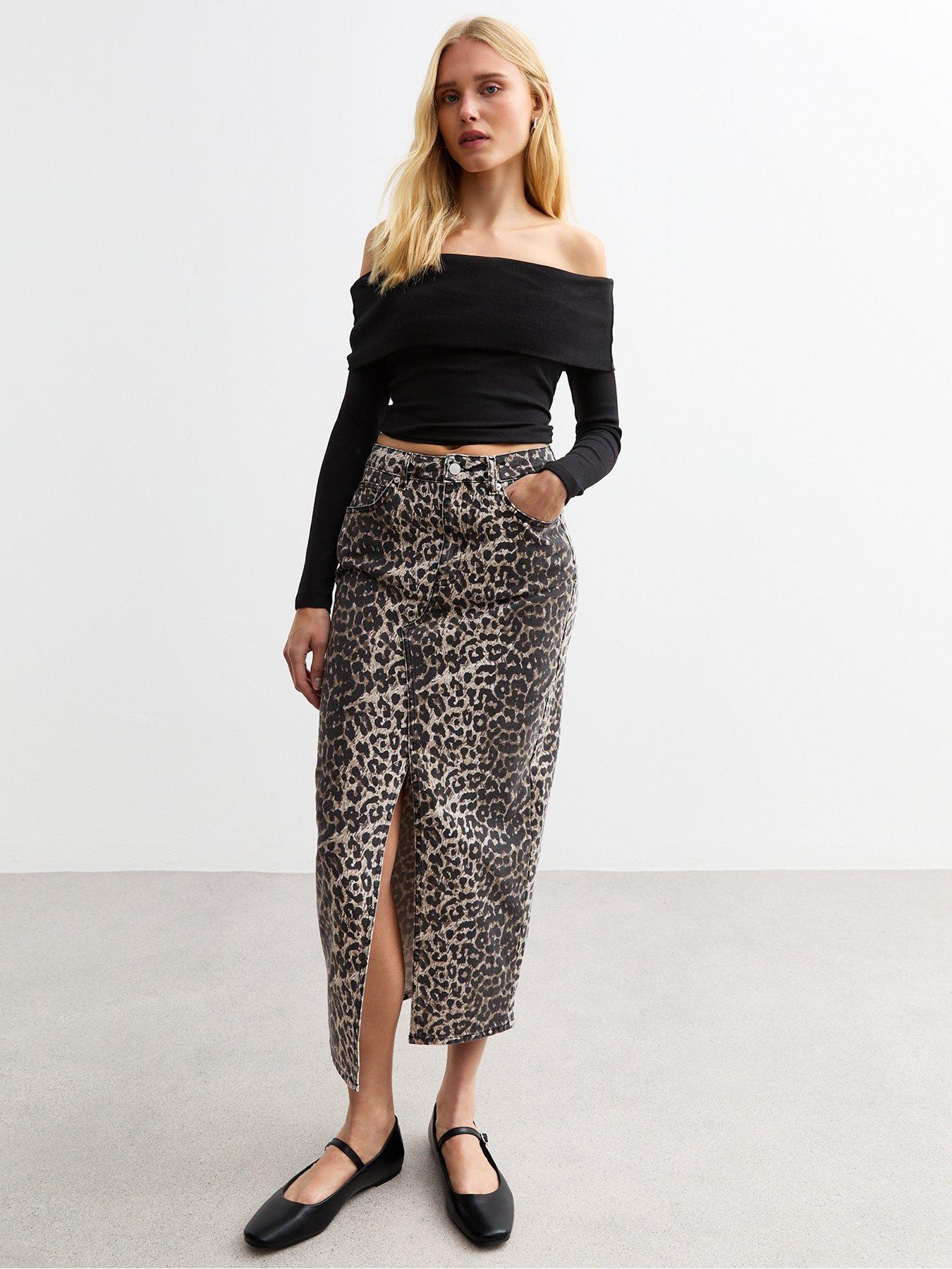 New Look Brown Leopard Print Mesh Midi Skirt Very