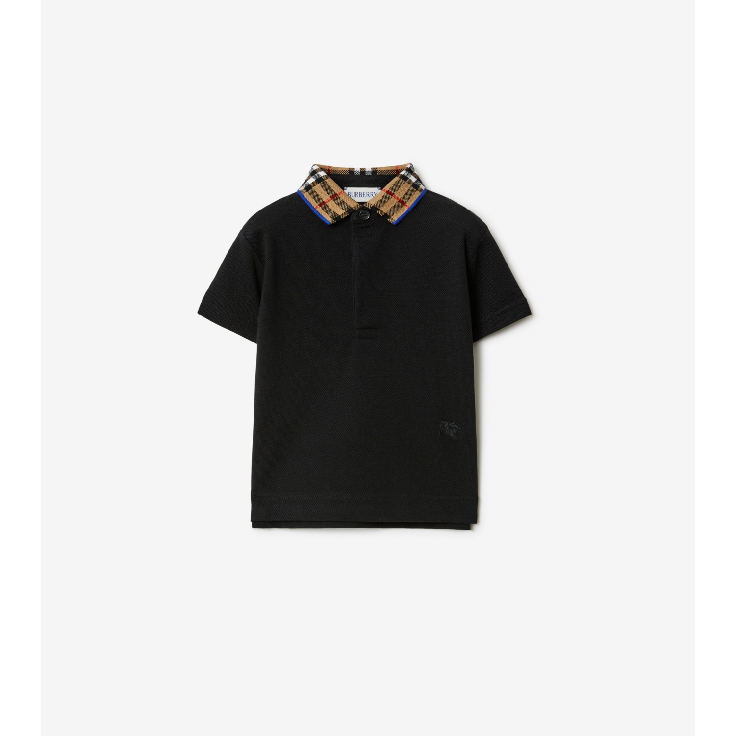 Check Collar Cotton Polo Shirt in Black Burberry Official
