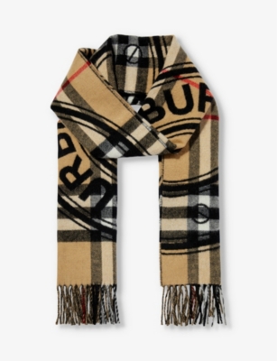 BURBERRY Giant Check logo pattern cashmere scarf Selfridges