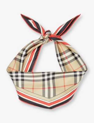BURBERRY Check pattern logo tab silk scarf Selfridges