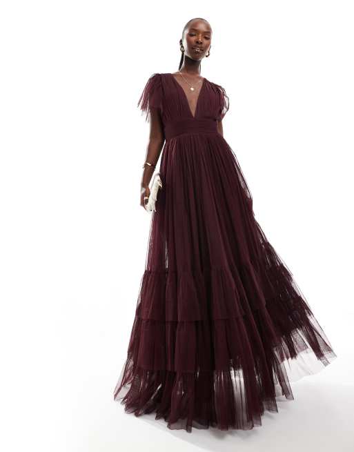 Lace Beads Bridesmaid Madison v neck tulle maxi dress in plum ASOS