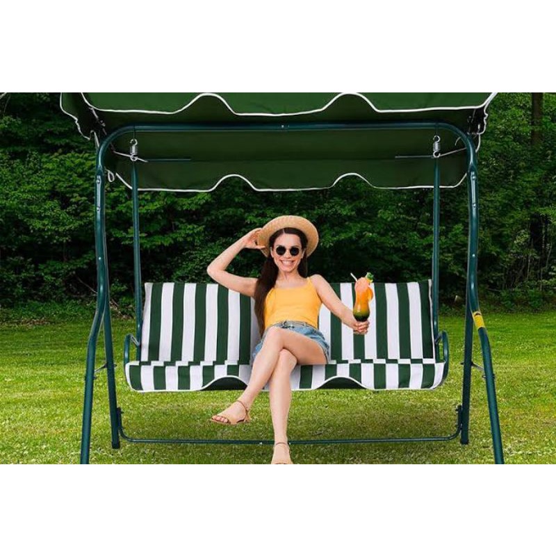 OHS 3 Seater Swing Bench With Canopy Green White Stripe
