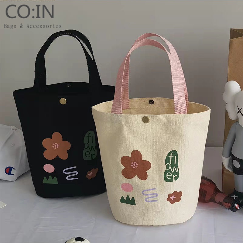 CO IN Small Flower Printed Canvas Bucket Bag Hand Carrying Lunch Box Portable Female Tote bag Sling bag Women