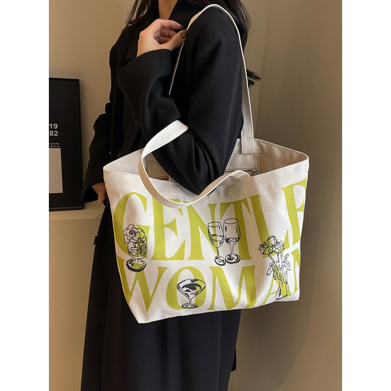 Gentlewoman Canvas laptop tote Bags with zipper Women big Large Capacity shoulder Bags Stylish Personality Letter bag 747 Shopee Philippines
