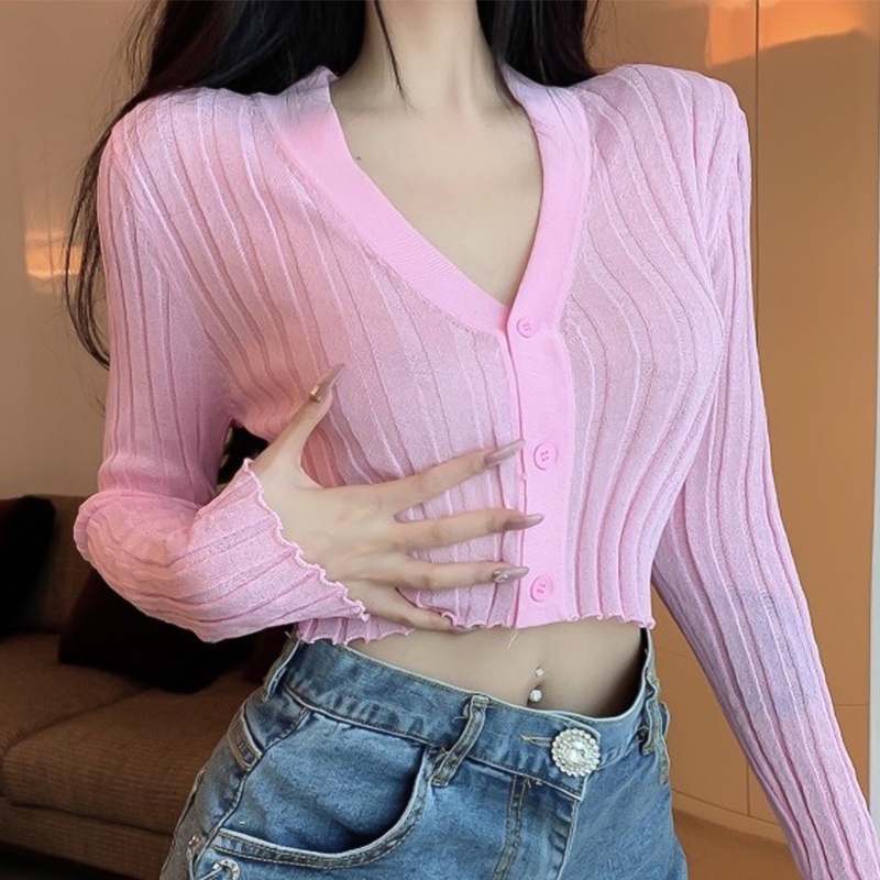 Autumn Women Long Sleeve V Neck Cardigan Cropped Blouse Buttons Slim Knitwear Shopee Philippines
