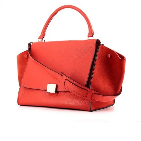 Celine Bags Celine Trapeze Medium Bag In Vermillion Red Wsilver Hardware Shoulder Strap Poshmark