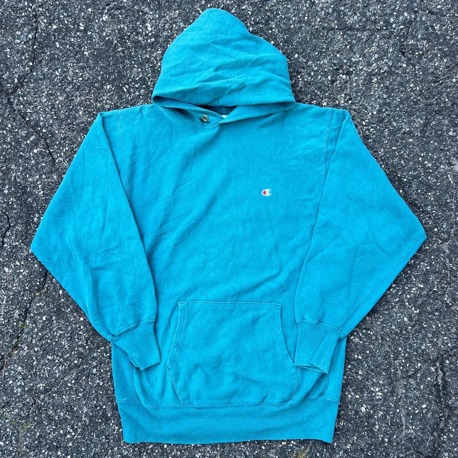 Champion Streetwear Vintage Vintage 90s champion teal reverse weave hoodie sweatshirt Grailed