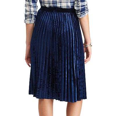 Chaps Women s Metallic Faux Suede Pleated Midi Skirt