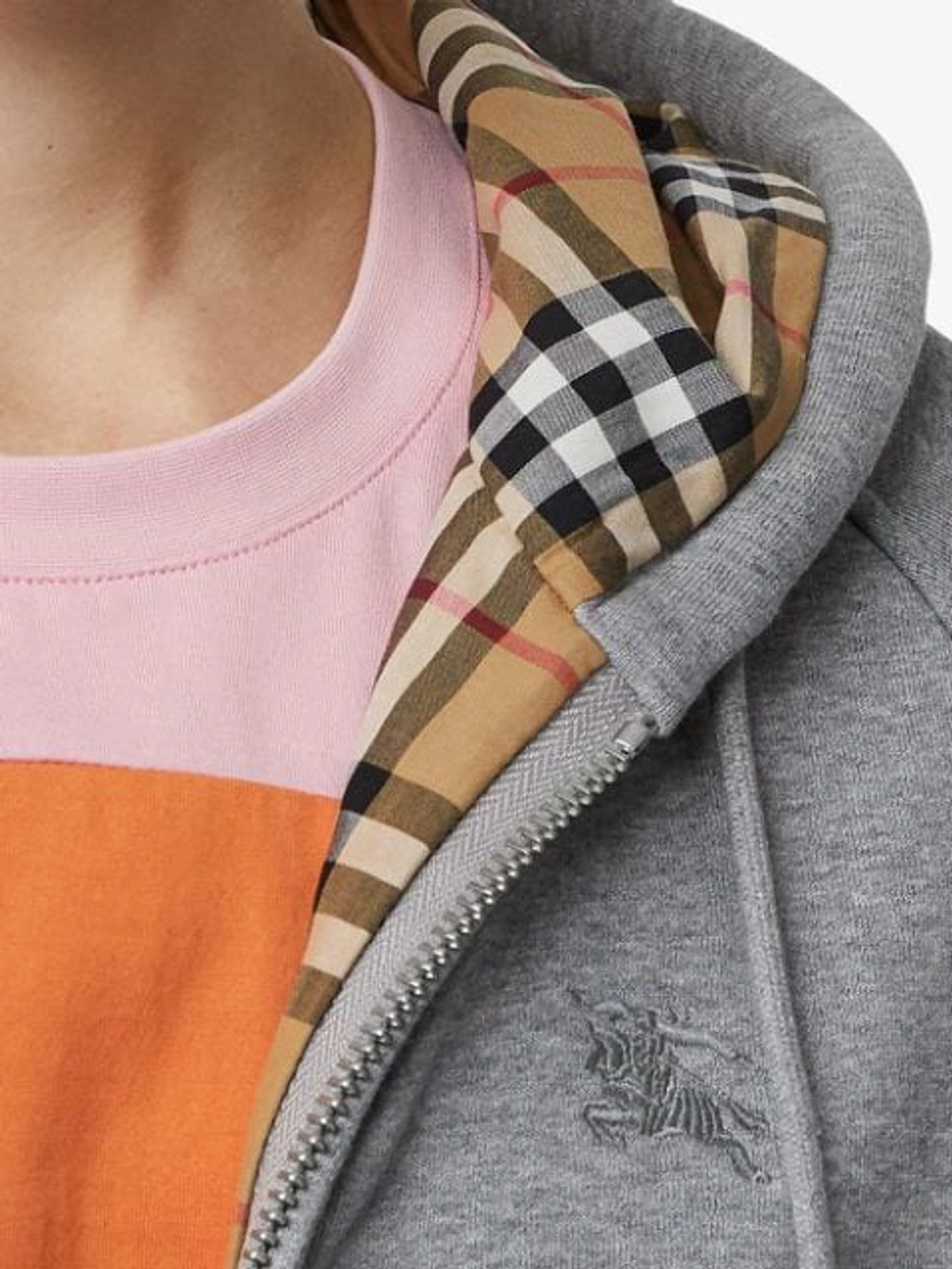 Burberry Vintage Check Detail Jersey Hooded Top In Pale Grey Melange ModeSens GB