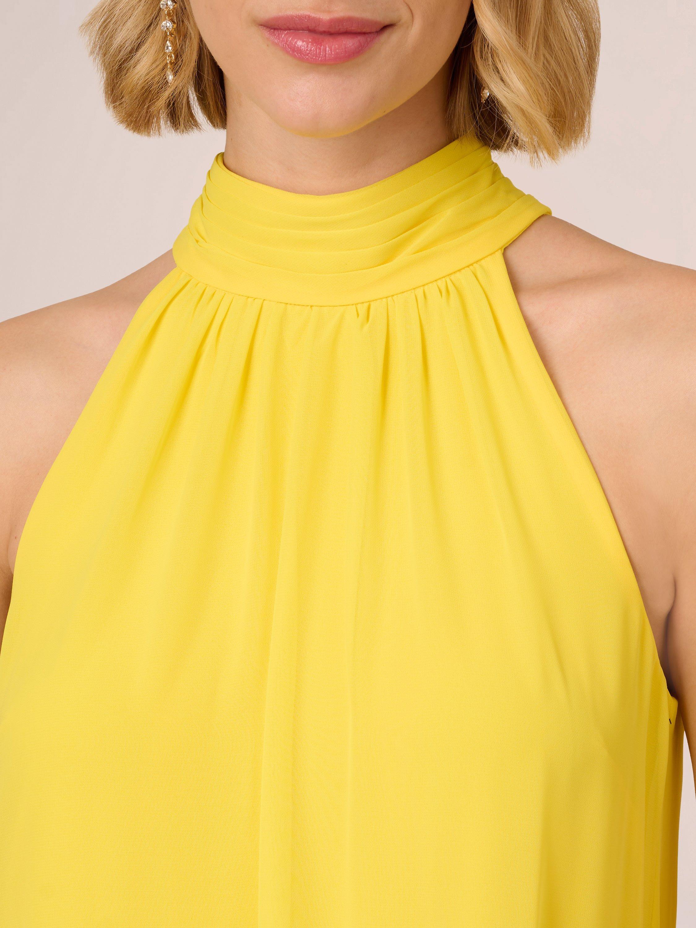 Adrianna Papell Chiffon Trapeze Mini Dress Hyper Yellow