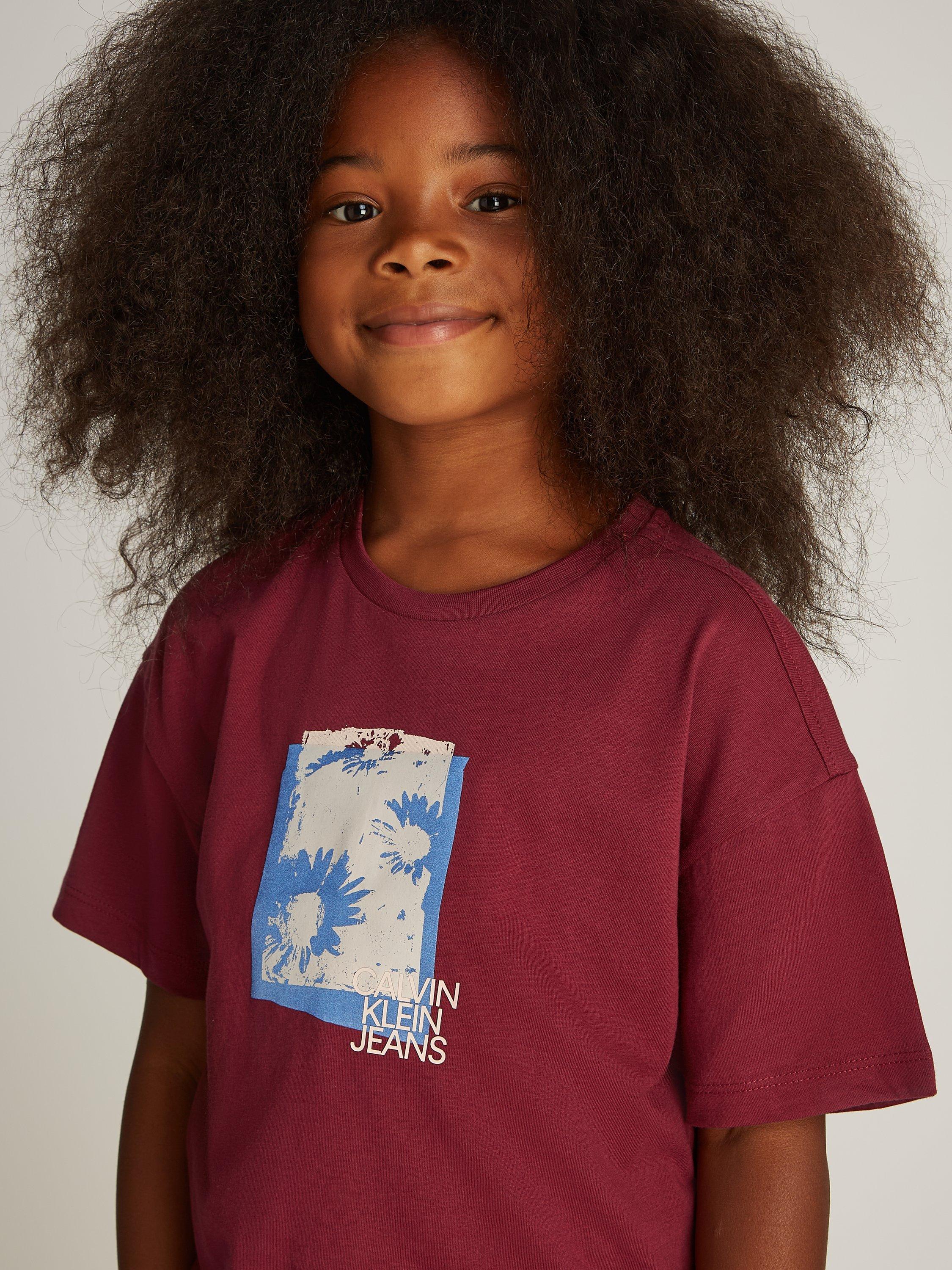 Calvin Klein Jeans Kids Flower Graphic Cotton T Shirt Rich Cherry