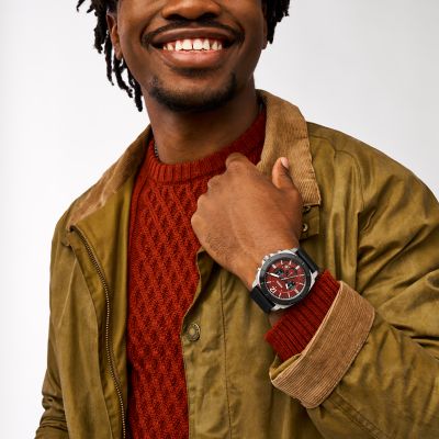 Privateer Chronograph Black Leather Watch BQ2897 Fossil