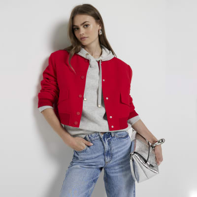 Karl Two tone Cropped Bomber Jacket Red Europa Art
