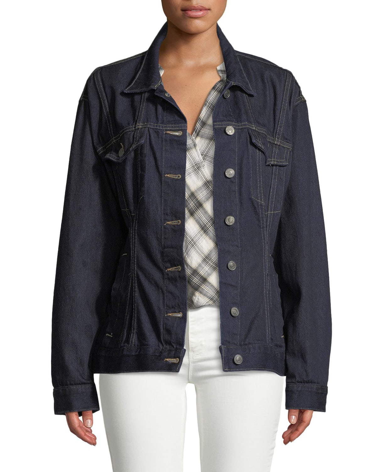 Current Elliott The Snap Jacket Barn Dark Denim Size 3 Jean Jacket Celebrity Owned