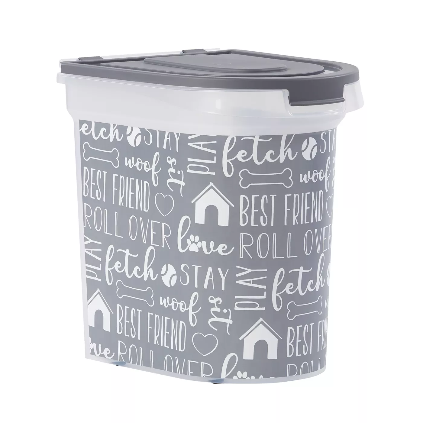 Paw Prints Grey Print Pet Food Storage Container with Wheels 26 lb