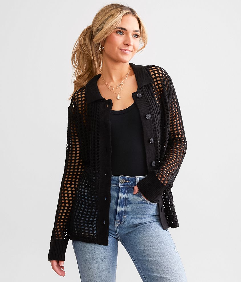 Double Zero Open Stitch Cardigan Sweater Women s Sweaters in Black Buckle
