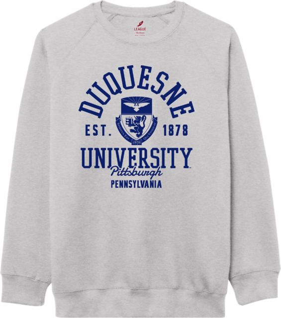 Duquesne crewneck sweatshirt deals, Amazon LOGOVISION Duquesne University Official Plaid Badge Unisex Adult Crewneck Sweatshirt Athletic Heather Small Deportes y Actividades al Aire Libre deals