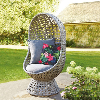 All Weather Resin Wicker Egg Shaped Swivel Chair with Seat Back Cushions Modern Garden Patio Decking Conservatory Furniture DIY at B Q