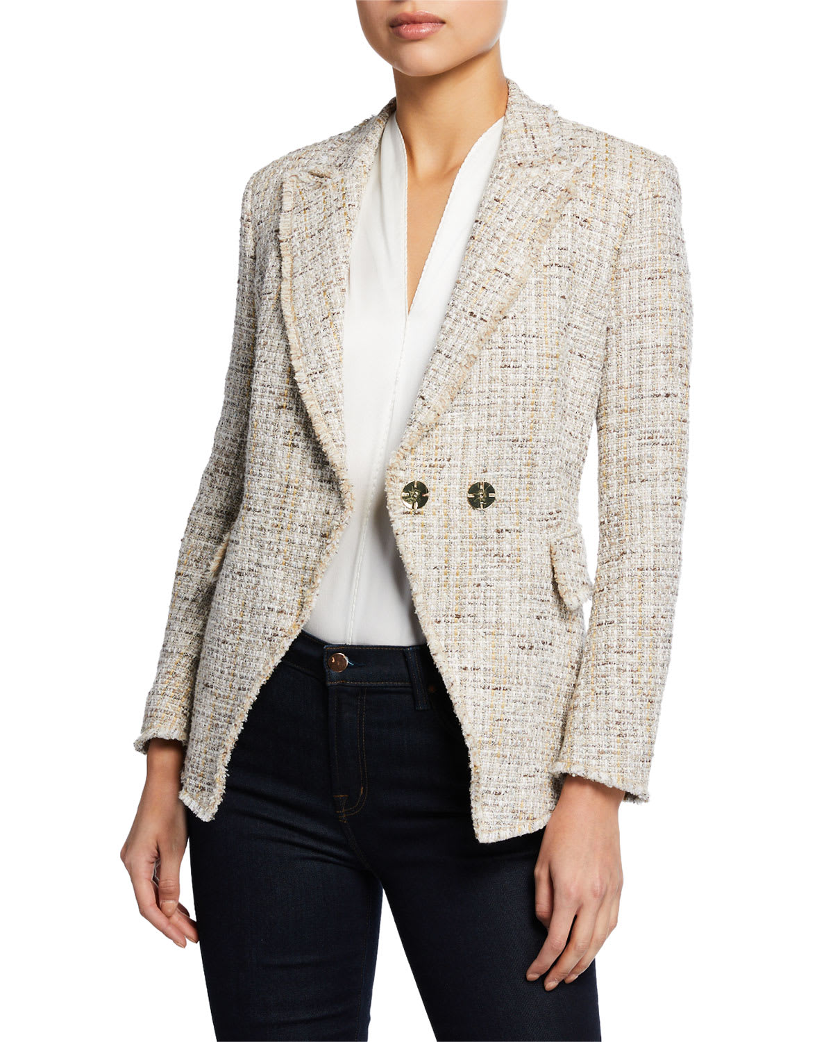 Elie Tahari Jezebel Button Front Tweed Jacket