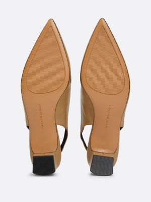 Escarpins slingback TH Monogram en cuir Kaki Tommy Hilfiger