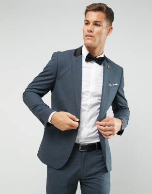 Farah Skinny Suit Jacket In Melange With Satin Collar Green Smart Closet
