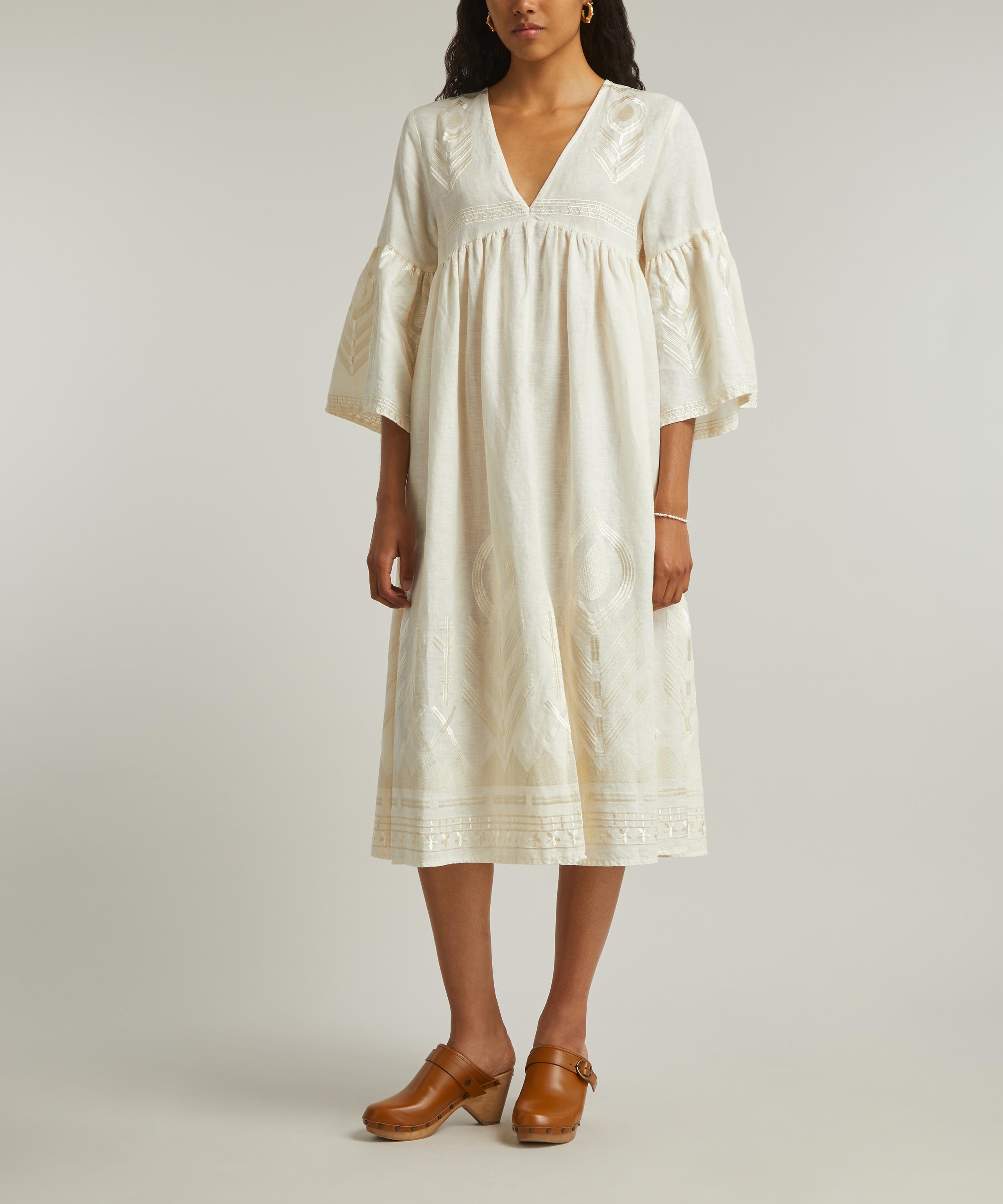 Kori Linen Feathers Midi Split Hem Dress Liberty