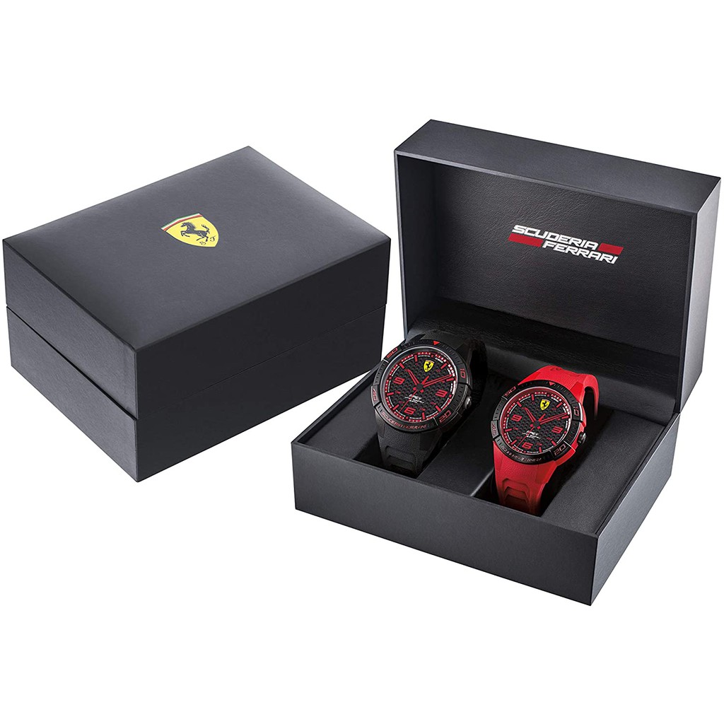 100 Original Scuderia Ferrari 0870044 Apex Couple Watch Set Black And Red Silicon Strap Watch 2 Years Warranty Shopee Malaysia
