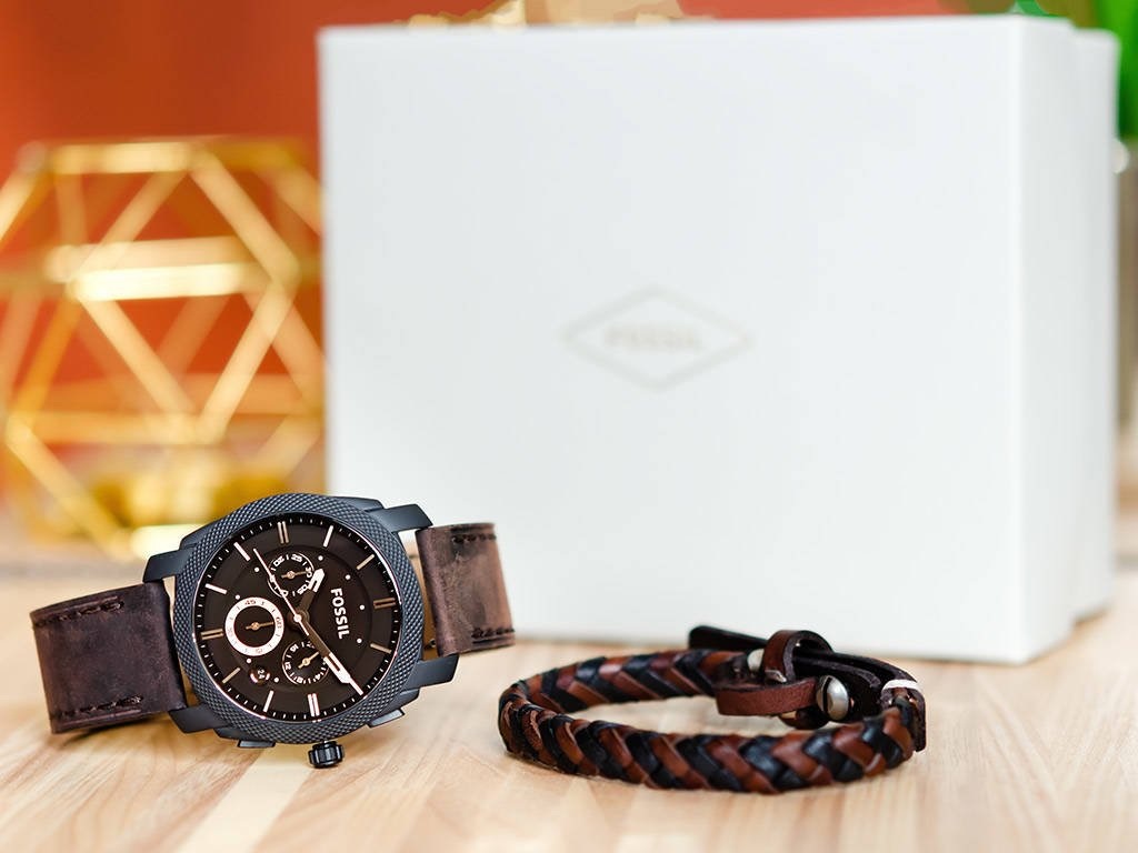 OFFICIAL WARRANTY Fossil Men s FS5251SET Machine Chronograph Dark Brown Leather Watch Bracelet Box Set 100 Ori Shopee Malaysia