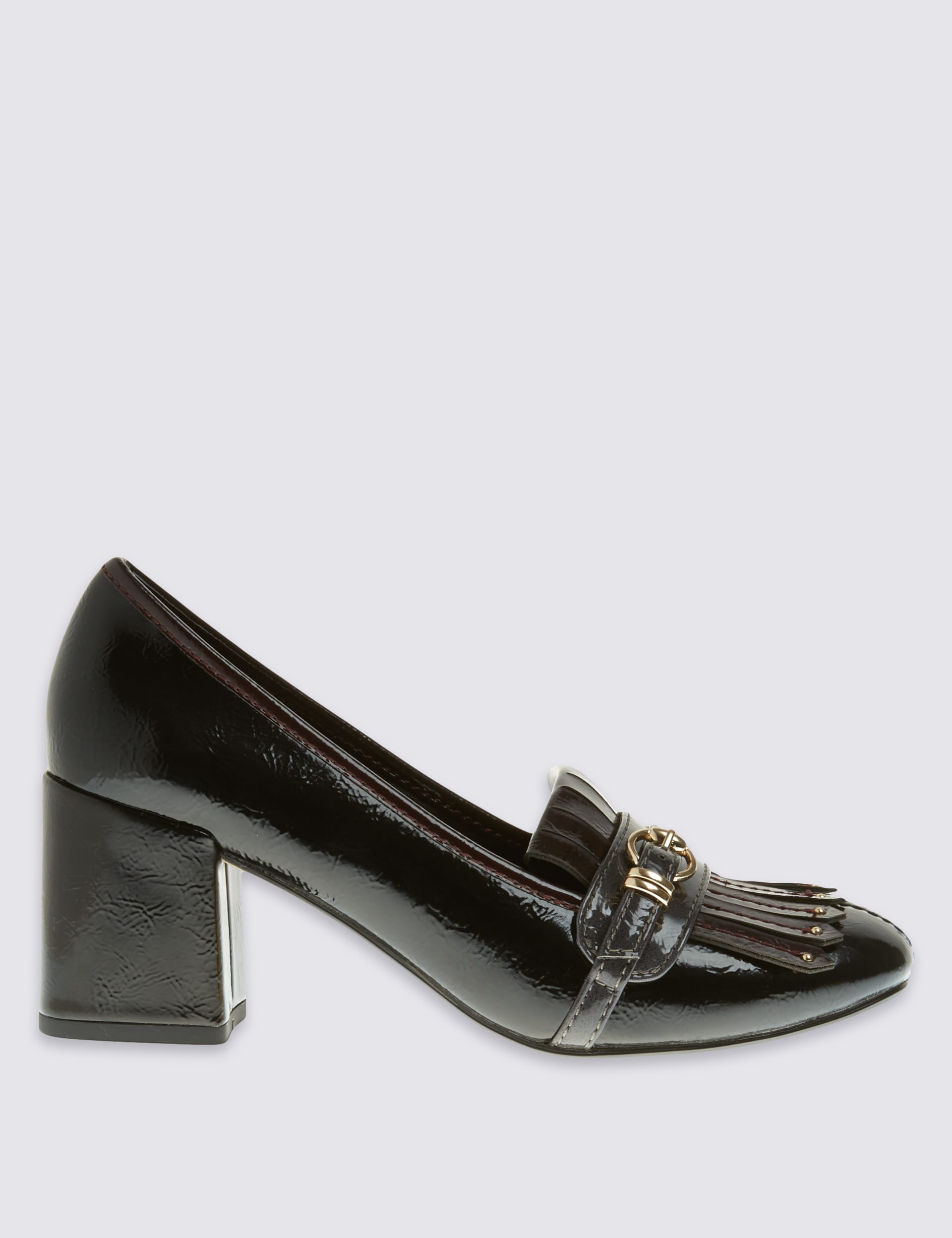 Block Heel Fringe Loafers with Insolia M S Collection M S