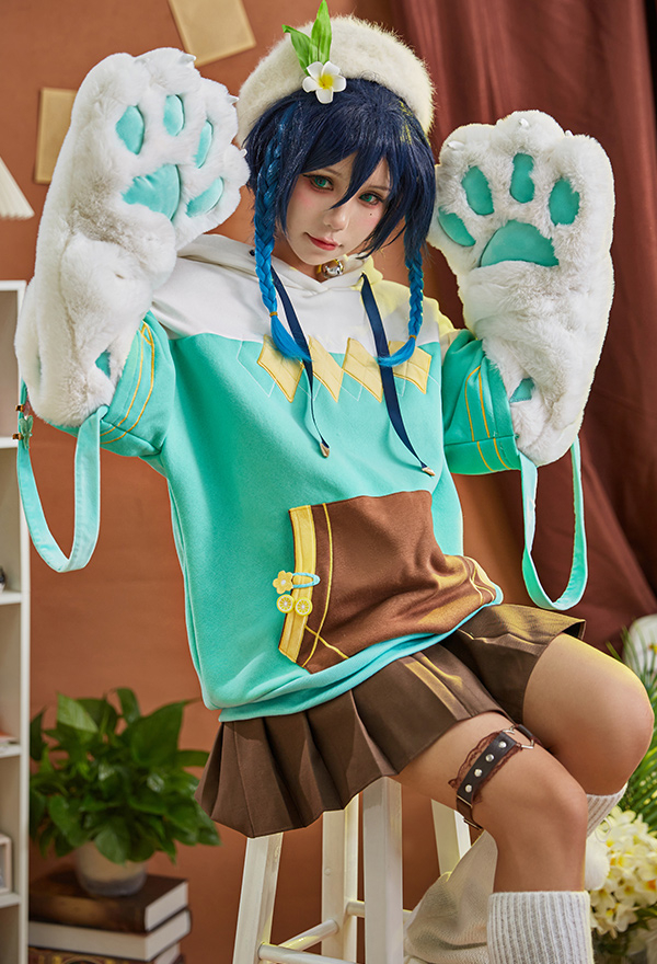 Venti Furry Paw Pullover Hoodie Genshin Impact Cute Fursuit Hoodie for Women Hoodie for Sale