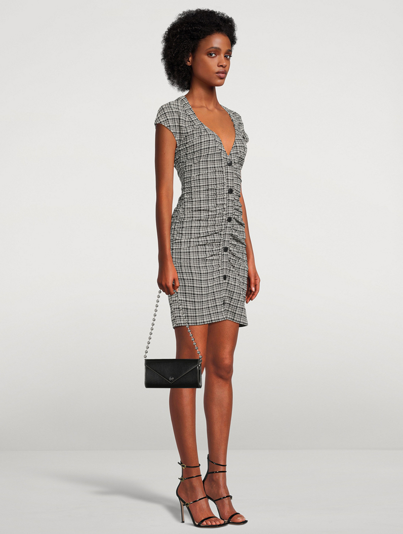 GANNI Ruched Seersucker Mini Dress In Plaid Print Holt Renfrew
