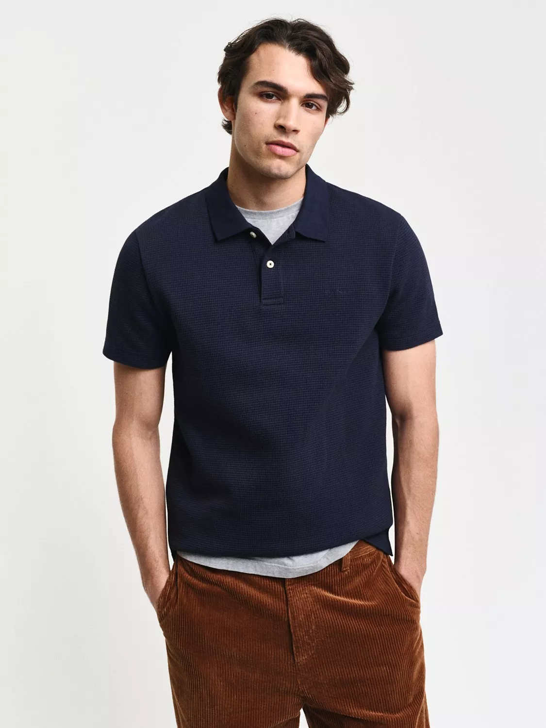 GANT Regular Shield Short Sleeve Pique Polo Top Evening Blue Black
