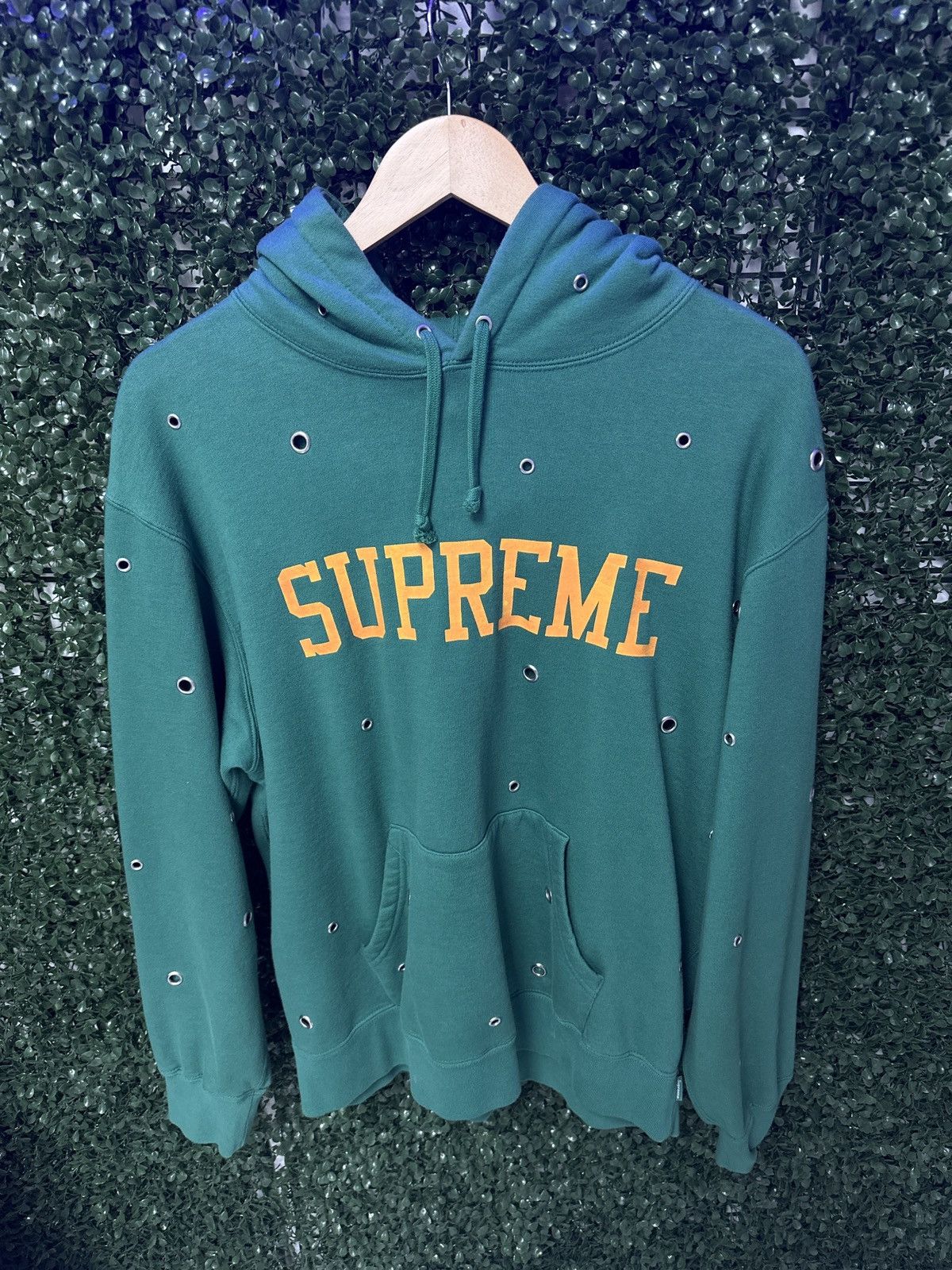 Pre owned Supreme Hoodie Green Orange Metal Holes ModeSens