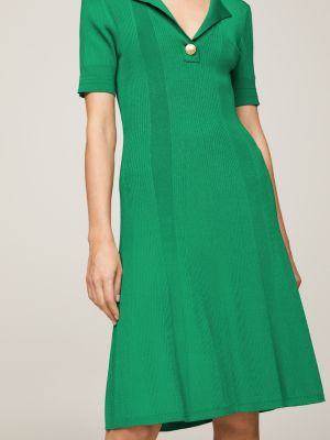 Ribbed Polo Fit And Flare Sweater Dress Green Tommy Hilfiger