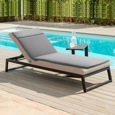 Quatropi Large Garden Cushioned Sun Lounger Premium Outdoor Grey