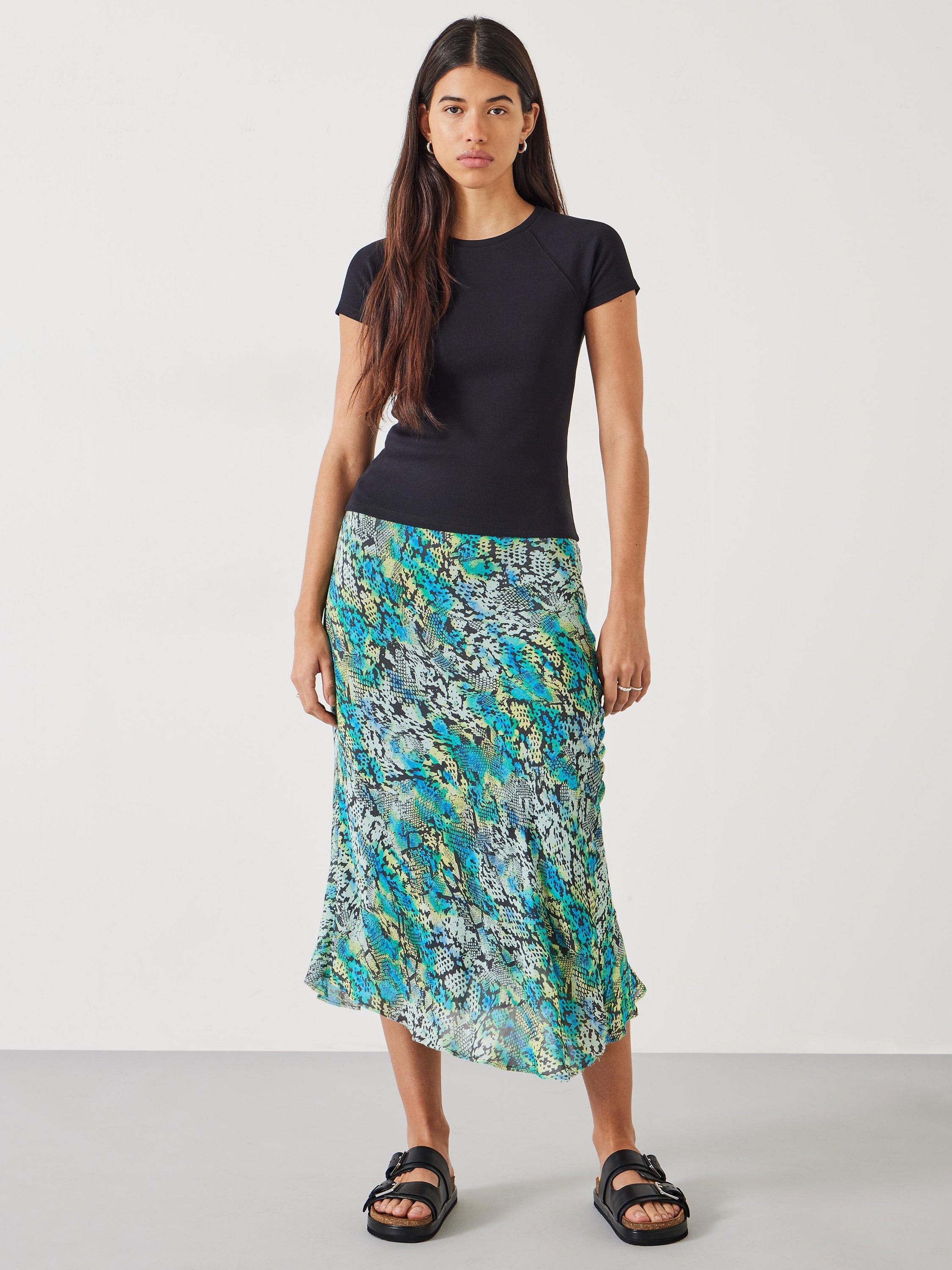 HUSH Hallie Tie Dye Snake Print Midi Skirt Multi