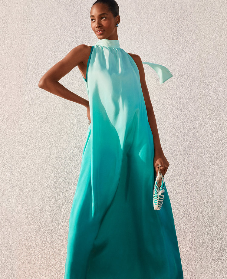 Emerald Green Halter Neck Maxi Dress SilkFred