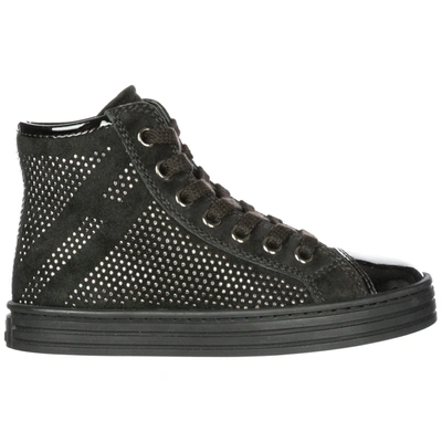 Hogan Rebel Girls Shoes Child Suede High Top Leather Sneakers R141 In Black ModeSens