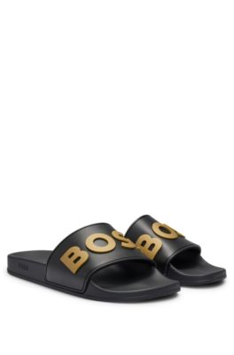 Hugo boss sliders gold deals, BOSS Solar Slid Logo Slides in Black Gold I BOSS I Norton Barrie deals