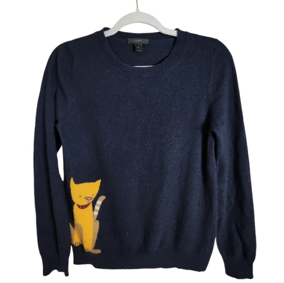 J. Crew Sweaters J Crew Tabby Cat Wool Rabbit And Cashmere Blend Navy Sweater Size M Poshmark